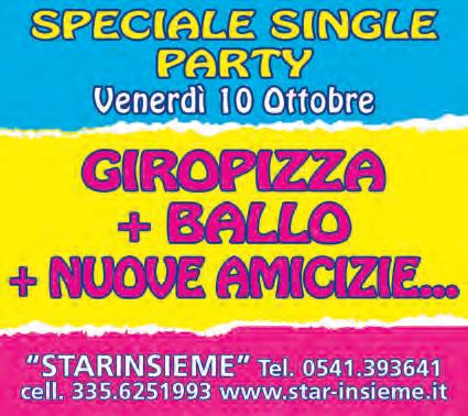SPECIALE PIZZA PARTY PER SINGLE venerdì 10 ottobre Giropizza+ballo+nuove amicizie. Starinsieme 0541.393641 cell 335.6251993 www.starinsieme.it