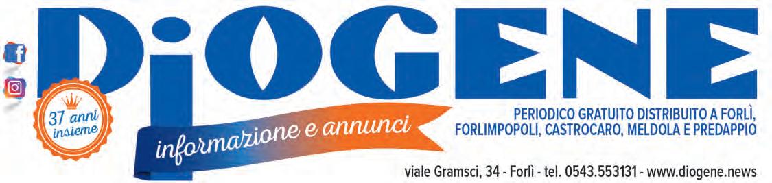 Enti, Proloco e Associazioni culturali e sportive possono comunicarci un evento via email all'indirizzo redazione@ diogeneannunci.it. Gli annunci verranno pubblicati sul giornale online e nella rubrica Diogene News del giornale cartaceo. In alternativa è possibile inviare i contenuti redazionali e gli annunci via posta tradizionale a DIOGENEV.le Gramsci, 34 - 47122 Forlì (FC) oppure consegnarli a mano allo stesso indirizzo. La redazione deciderà di volta in volta se pubblicare o meno le informazioni ricevute a suo insindacabile giudizio. Nell'impossibilità di verificare tutto il materiale ricevuto, si fa presente sin da ora che la responsabilità dei diritti iconografici e di altri diritti esclusivi di terzi è di chi ci fornisce le informazioni.