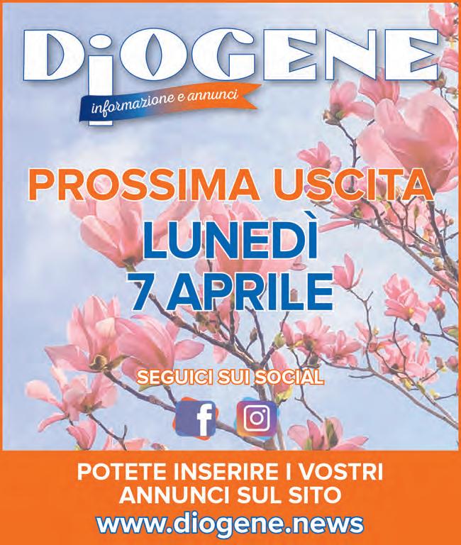 Enti, Proloco e Associazioni culturali e sportive possono comunicarci un evento via email all'indirizzo redazione@ diogeneannunci.it. Gli annunci verranno pubblicati sul giornale online e nella rubrica Diogene News del giornale cartaceo. In alternativa è possibile inviare i contenuti redazionali e gli annunci via posta tradizionale a DIOGENEV.le Gramsci, 34 - 47122 Forlì (FC) oppure consegnarli a mano allo stesso indirizzo. La redazione deciderà di volta in volta se pubblicare o meno le informazioni ricevute a suo insindacabile giudizio. Nell'impossibilità di verificare tutto il materiale ricevuto, si fa presente sin da ora che la responsabilità dei diritti iconografici e di altri diritti esclusivi di terzi è di chi ci fornisce le informazioni.