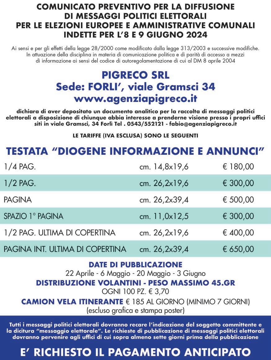 1217 Lunedì 8 Aprile tel. 0543.553131 2 DIOGE NEWS www.diogene.news