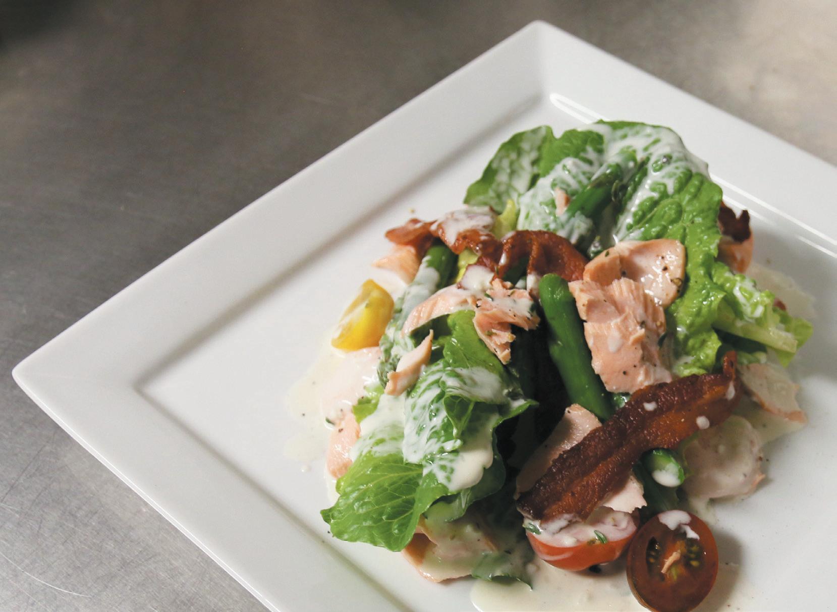Arrange components onto a plate similar to photo and drizzle with dressing.