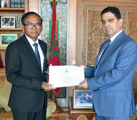 Mr. Nasser Bourita received on March 27, 2023, in Rabat, His Excellency Mr. UK Sarun, who came to present him with the copies of his credentials as Ambassador Extraordinary and Plenipotentiary of the Kingdom of Cambodia to His Majesty King Mohammed VI.
