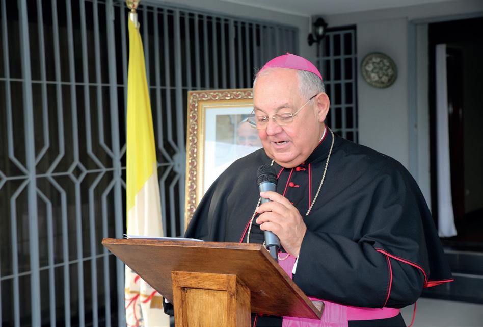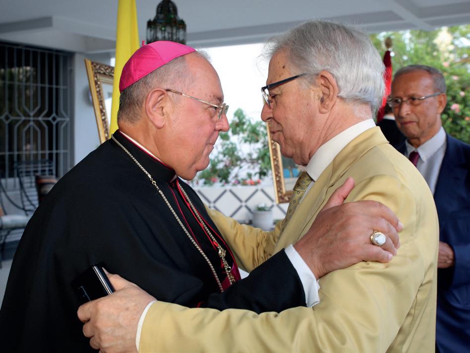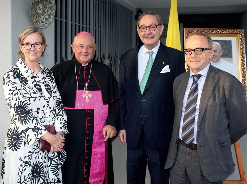 The Apostolic Nuncio, His Excellency Monsignore Vito Rallo, surrounded by the Ambassadors of the European Union, Spain, and Italy.