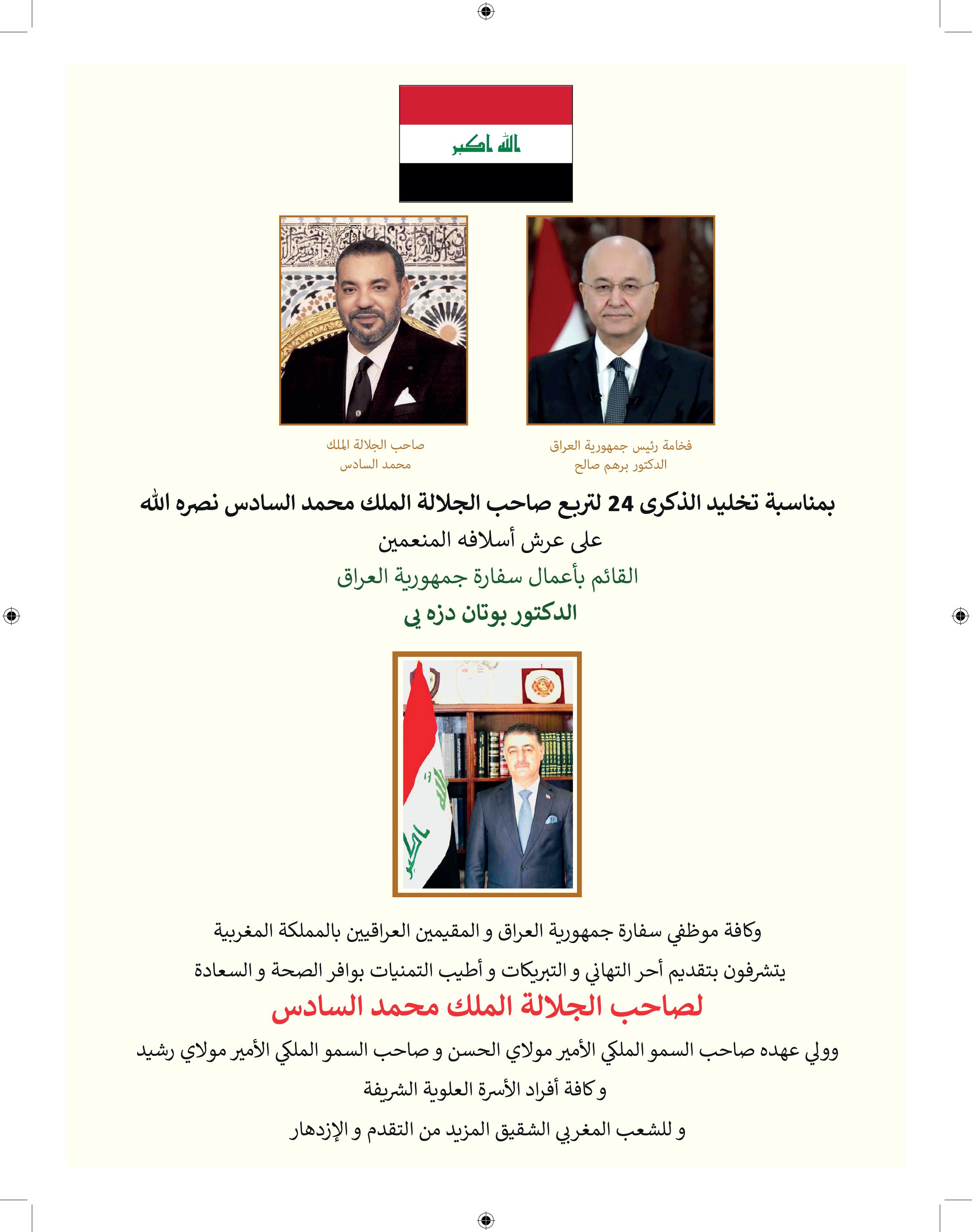 His Majesty King Mohammed VI on Saturday July 29, 2023 delivered a speech to the Nation on the occasion of the 24 th anniversary of the Sovereign's accession to the throne of His glorious ancestors. Here follows the full text of the Royal speech: