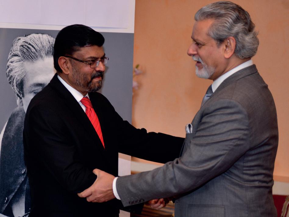 L'Ambassadeur du Pakistan, S.E.M. Hamid Asghar Khan félicite son collègue et ami, S.EM.. Mohammed S. Hossain The Ambassador of Pakistan, H.E. Hamid Asghar Khan congratulates his colleague and friend, H.E. Mohammed