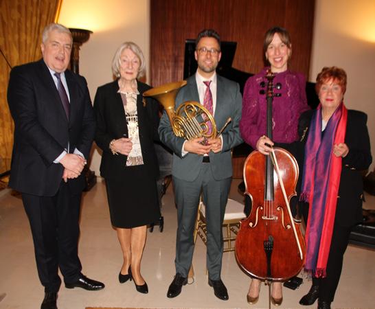 Le Grand Salon was filled with music performed by members of the National Arts Centre Orchestra, including cellist Julia MacLaine and her husband, horn player Louis-Pierre Bergeron. This fundraising cultural event was presented in collaboration with the Friends of the National Arts Centre Orchestra.