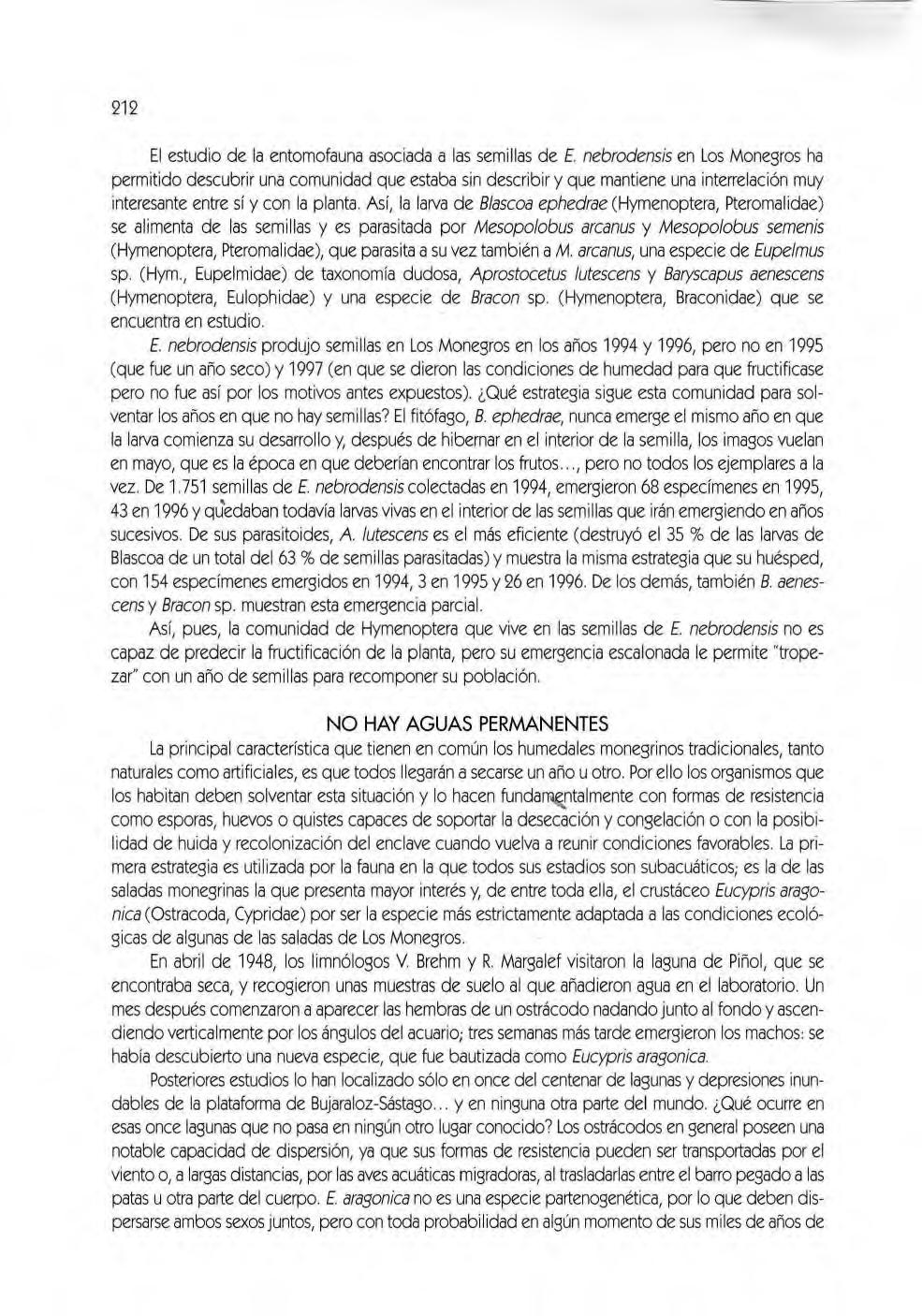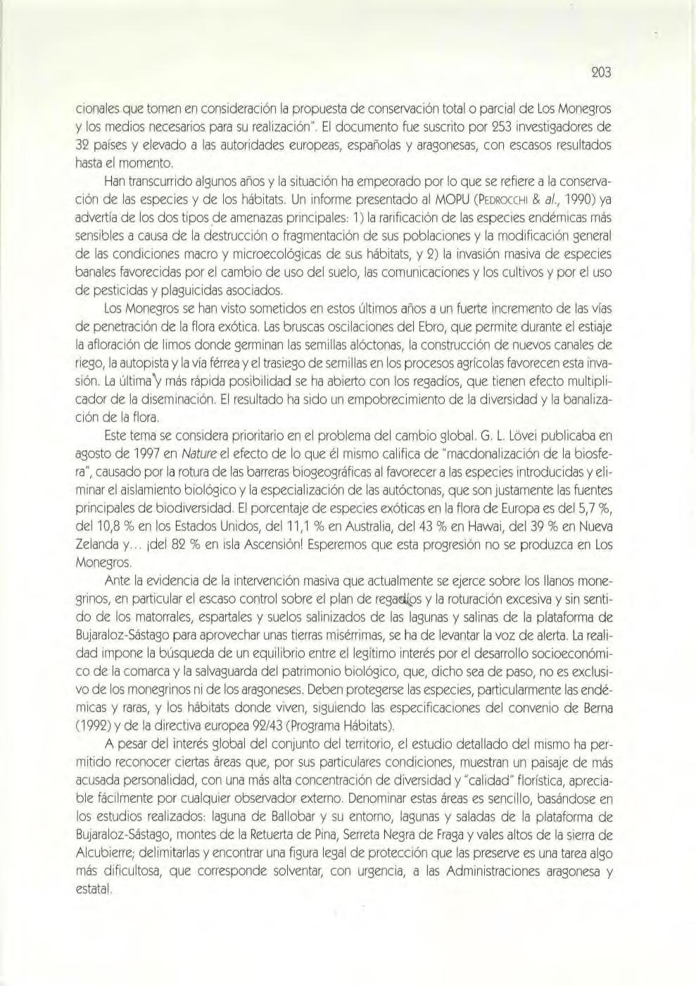 Cuando J. Braun- Blanqu et y O. de Bol6s escrib en en 1957 "La llanura de Zaragoza{ por su paisaje{ es un enclave africano en tierras de Europa " lo hacen como pioneros estudiosos de un único grupo de seres vivos: la s plantas vascu lares. De haber conoc id o lo que actualmente se ha descrito de otros grupos de animales y vegetales{ habrían cambiado "africano " por "asiático " .