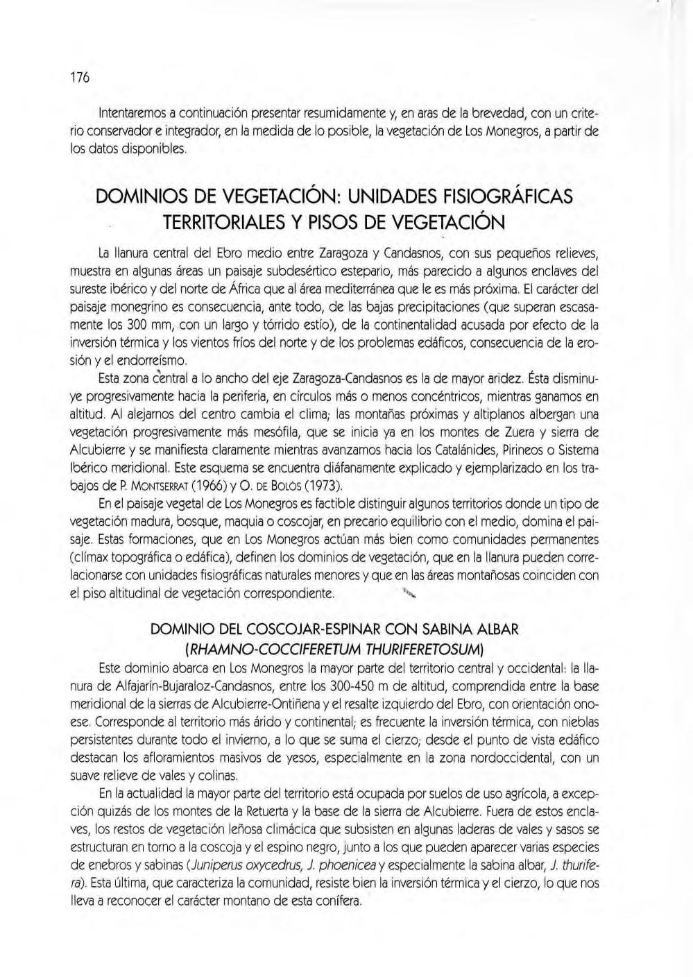Dominio del ca rrascal ( Quercetum rotundifoliae), 190 Vegetación caducifolia de los márgenes del Ebro y sus afluentes (alisedas, choperas, saucedas y tarayales ), 192 la interpretación del paisaje vegetal de los Monegros: ¿equ ilibrio natural o deforestación?