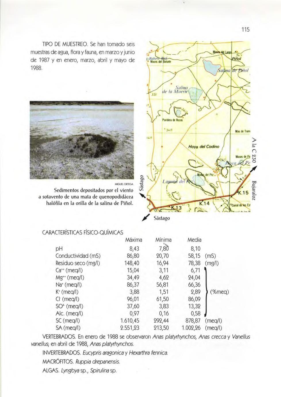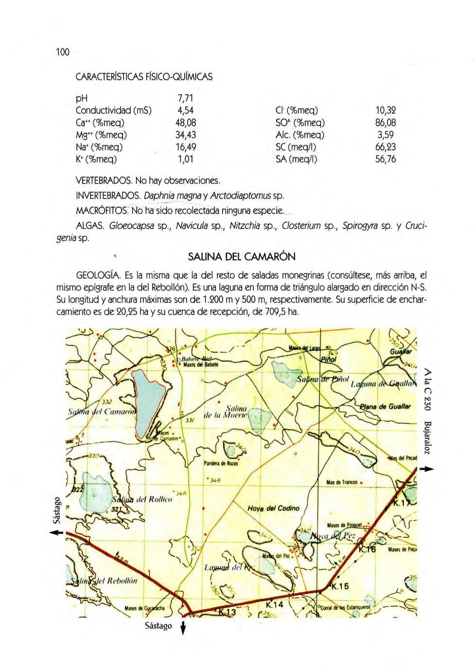 Salina del Reboll ón, 96 Salina del Rollico, 97 Laguna del Pez, 98 Hoya del Pez, 99 Salina del Camarón, 100 Salina de la Muerte, 101 Hoya de Valde carretas , 103. Laguna de Guallar, 104 Hoya de Mas del Rufo, 105 Hoya de Corral Vi ejo, 106 Bal sa de La s Amargas , 107 Embal se de la Plana del Vedado, 108. Laguna La Playa, 109. Laguna de Pueyo, 111. Laguna de Pito, 112. Laguna de Pozo Agustín, 113. Salina de Piñol, 114. Hoya de los Berzas, 116 Bal sa de Mirarfotos, 117 La Salineta, 117 El Saladar, 119 El Salobral, 120