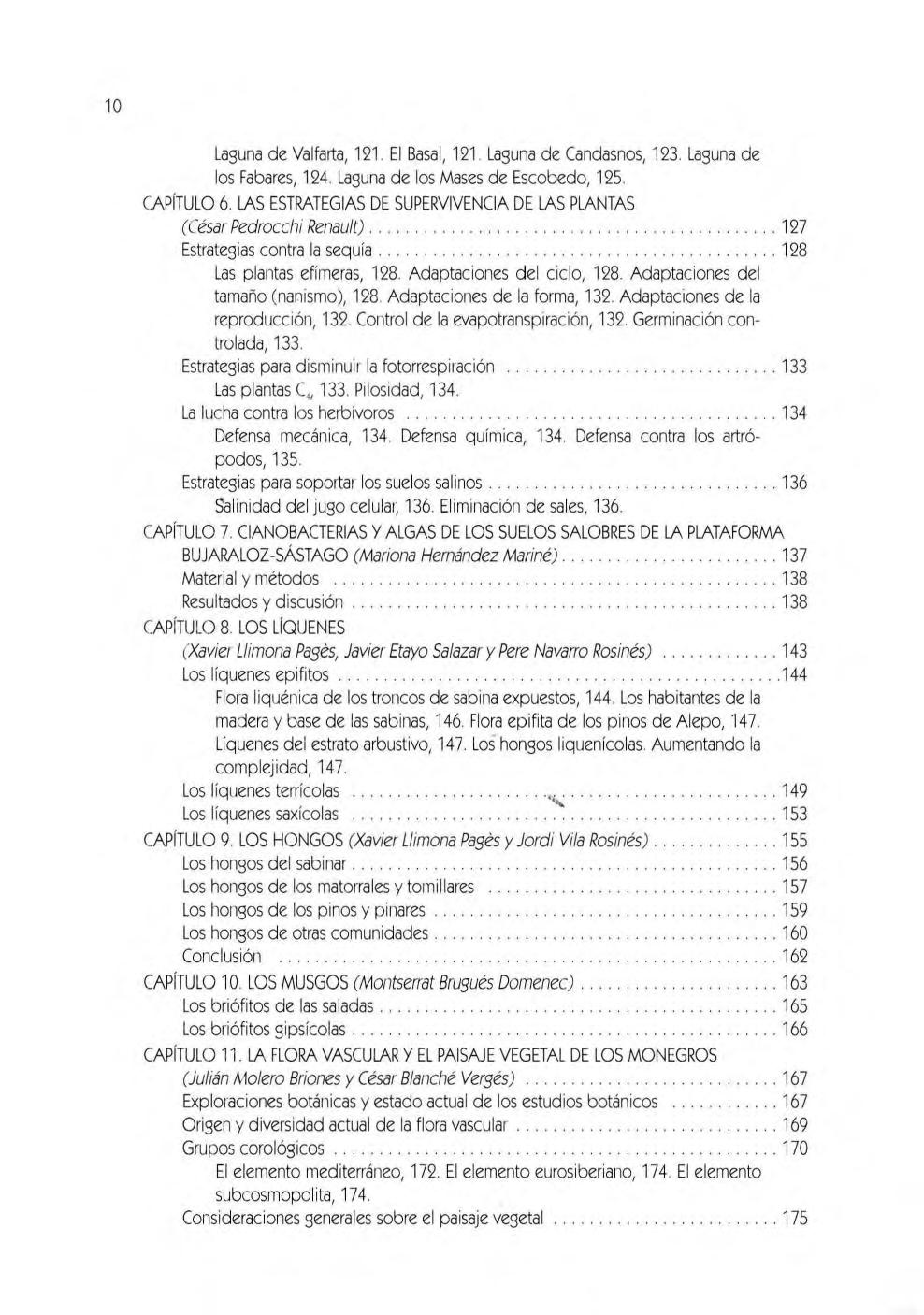 CAPíTULO 10 lOS MUSGOS (Montserrat Brugués Dom enec) 163 los briófi to s de la s saladas 165 los briófitos gipsícolas .