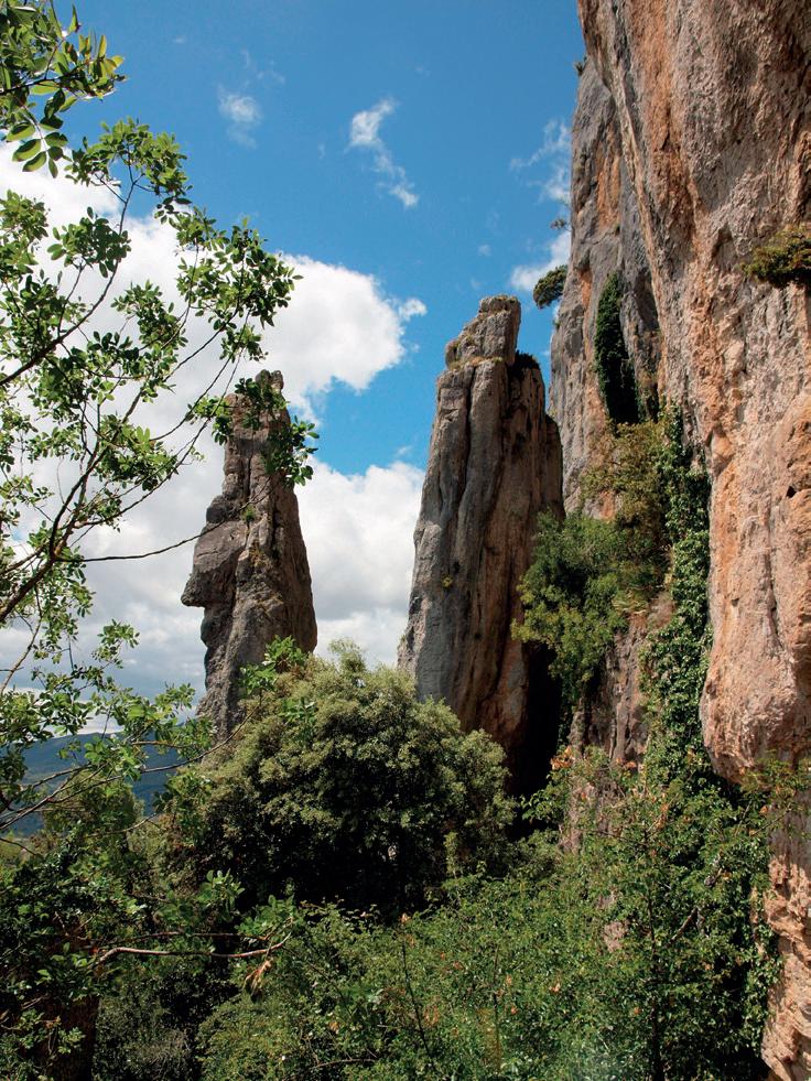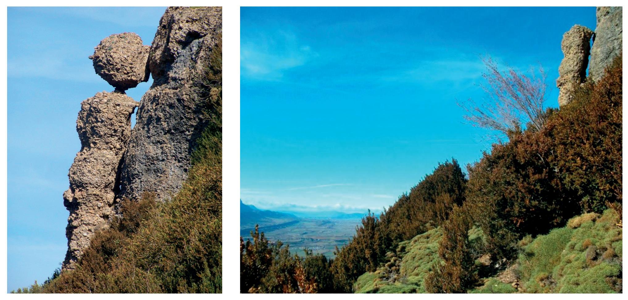 Imágenes de cubierta: Peña Mujer, en el antiguo camino que une las localidades altoaragonesas de Velillas y Torres de Montes / Peña del Diablo o del Calvario, en Almunia de San Juan. (Fotos: Eugenio Monesma)