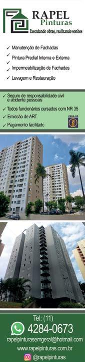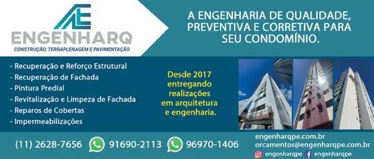 TIRAGEM 20.000 exemplares (60.000 leitores em média) PÚBLICO LEITOR DIRIGIDO Síndicos, zeladores e administradores CIRCULAÇÃO São Paulo e Grande São Paulo CAPA Foto Canva ASSINATURAS Emilly Tabuço faleconosco@direcionalcondominios.com.br DEPARTAMENTO COMERCIAL Alexandre Mendes Evelyn Neves Fabian Mesquita Karina Pereira Nil Ricarte ATENDIMENTO AO CLIENTE Emilly Tabuço João Marconi Juliana Jordão Grillo GERENTE COMERCIAL Leandro Fernandes MARKETING Thiago Virgilio DIAGRAMAÇÃO Jonas Coronado IMPRESSÃO Grass Indústria Gráfica EQUIPE DISTRIBUIÇÃO Douglas Barbosa da Silva Evaldo Mendonça José Ricardo da Silva Pedro Henrique Rodrigues Paiva Roberio Santos ASSINATURA ANUAL R$ 180,00 EDITORIAL
