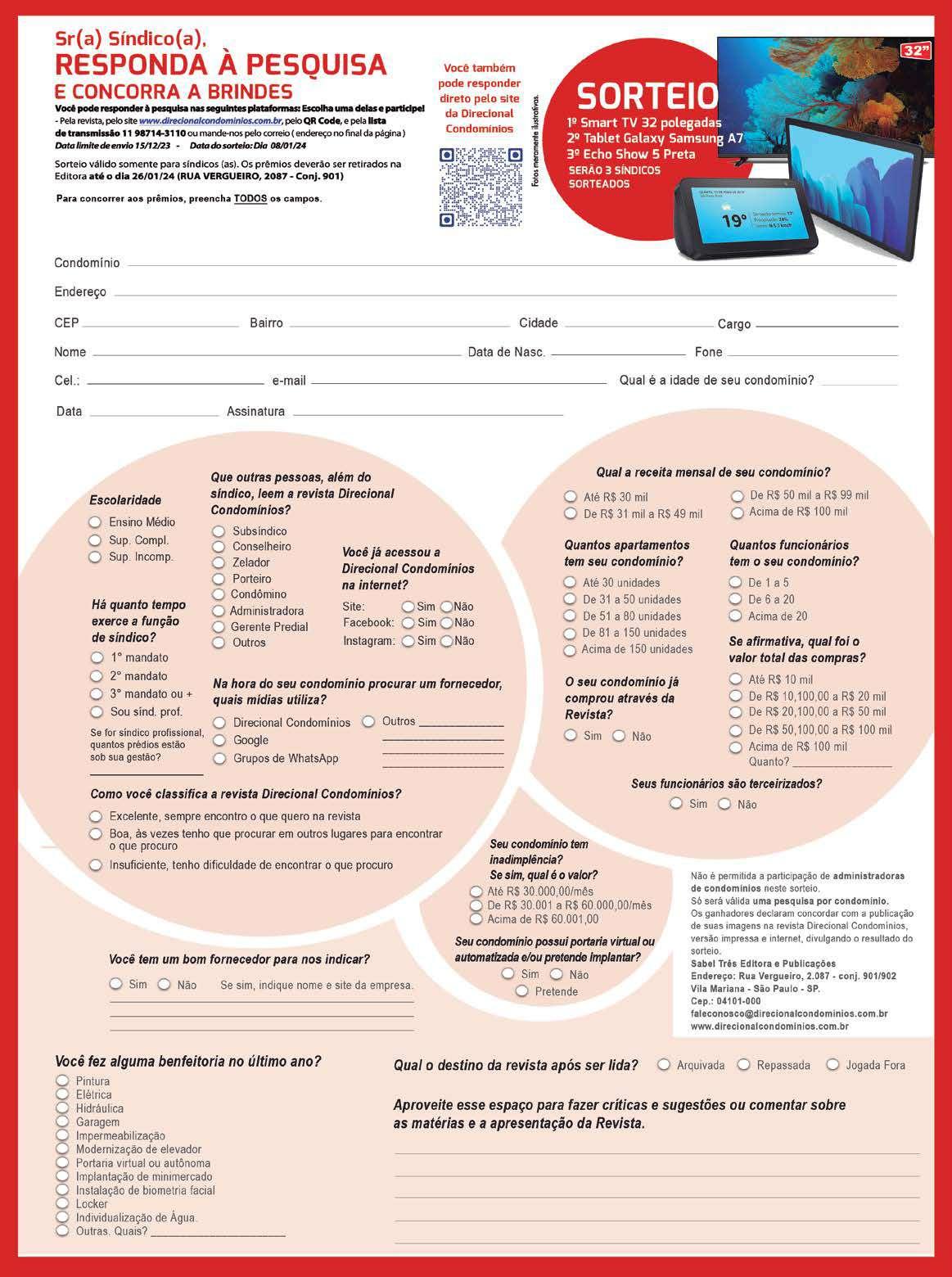 Síndico(a), responda a pesquisa da pág. 4 e concorra a prêmios