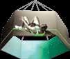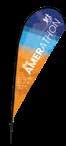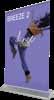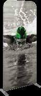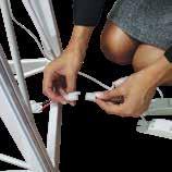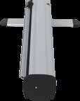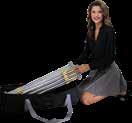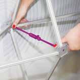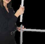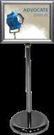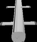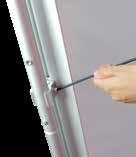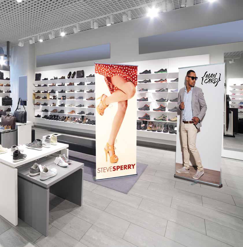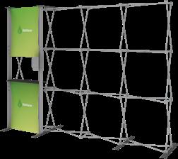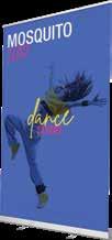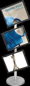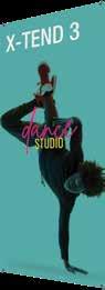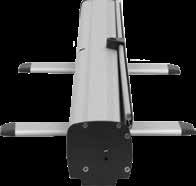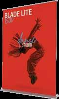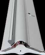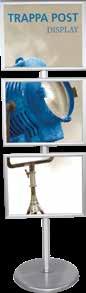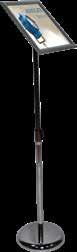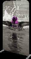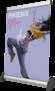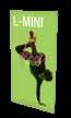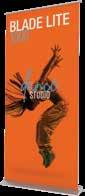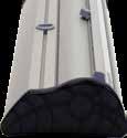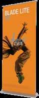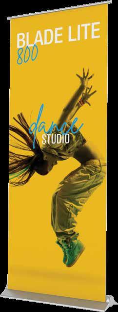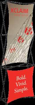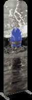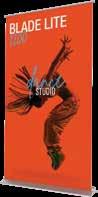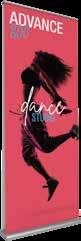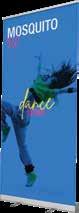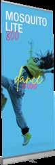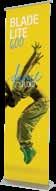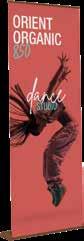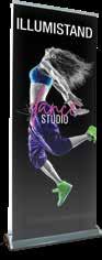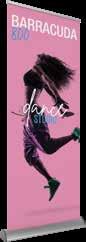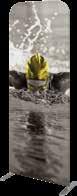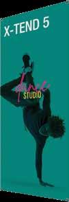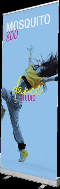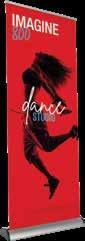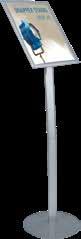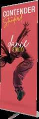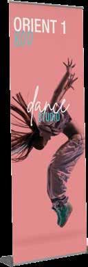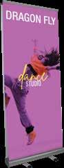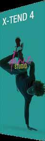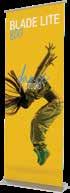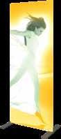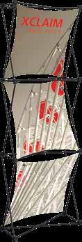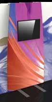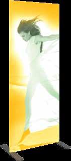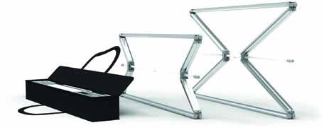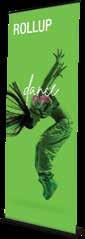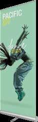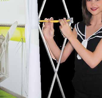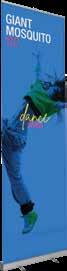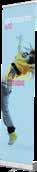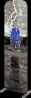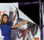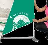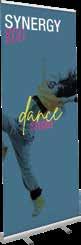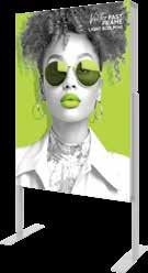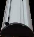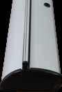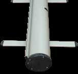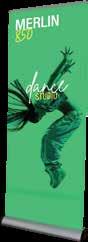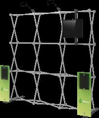 - graphic materials: vinyl, fabric, melinex, green PVC-free - anodized silver base - snap top graphic rail - hybrid bungee/telescopic pole