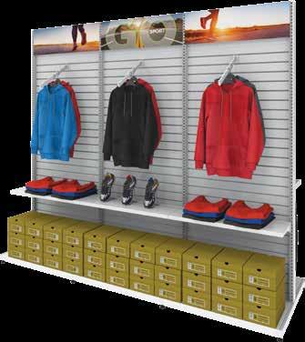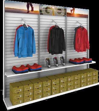 The MODify® Retail Merchandising System offers three metal powder coat finishes. Base kits come in one color for the frame, base, slatwall and included accessories. Optional accessories and fixtures are an ideal way to mix and match colors.