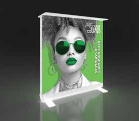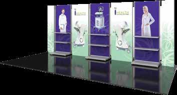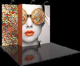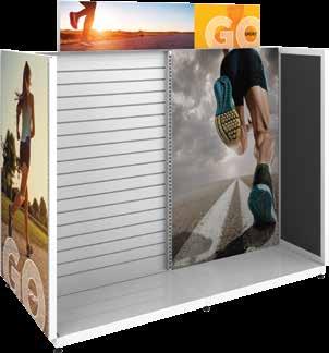 - Superior, vibrant SEG push-fit fabric graphics. - Turnkey – 7 days for most displays! - Simple assembly – associate level install. - Three color options: White, Black, and Silver. - Easy to MODify with shelves and fixtures.