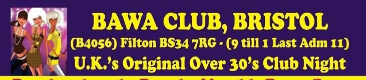 OVER 30’s DANCE PARTY at the superb BAWA Club, Filton on the FIRST Friday of EVERY MONTH (except No Dance in JAN or AUG and the APRIL DANCE is on FRI 14th) It’s The Ideal Night Out For The 30 * 40 * 50 * 60 Age Range.