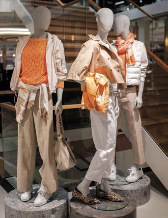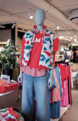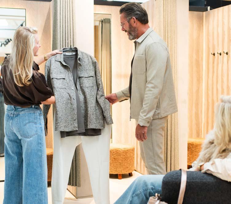 De winkel ziet er weer erg aantrekkelijk uit en je wordt hebberig van alle frisse pasteltinten, zoals zachtrose, zalm, lila, groen en blauw. Maar de aardetinten voeren de boventoon! Bij zowel de heren als de dames zie je veel zomerbrei in prachtige jacquard-structuren in polo’s, pullovers, vestjes en overshirts. Daarnaast mag het allemaal weer ietsjes wijder, opvallend in jeans, wederom voor zowel de man als de vrouw.