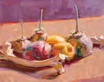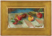 The ethereal still life in loose realism style painted on canvas-covered artist's board is signed lower left front and titled verso along with a label from Demott Gallery in Vail, Colorado. The work is displayed in a high quality custom frame. Board measures 12 x 16 with a framed size of 17 x 21 inches. Very good original untouched condition. There are no issues of scratches, losses, repairs, in-painting or touch-up.