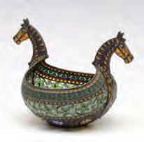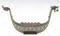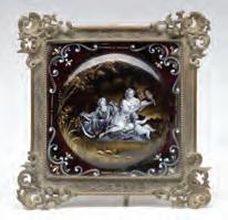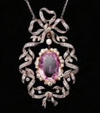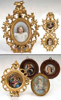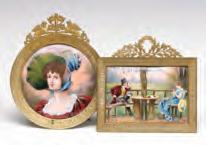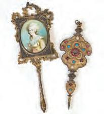 1. A French gilt bronze rococo hand mirror with miniature hand painted portrait of a woman of the court.2. An intricate ornamental pendant with elaborate wire work along with turquoise-colored cabochons and red faceted stones.
