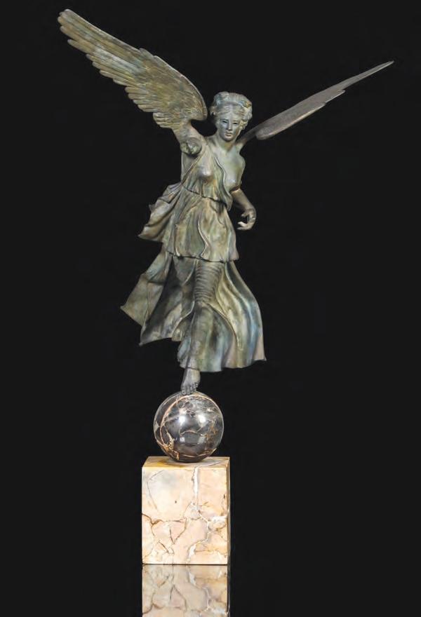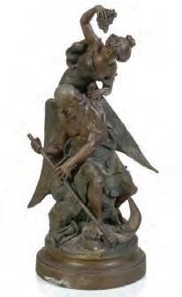 The Seduction of Chronos in spelter with patinated finish is sculpted after the work by Paul-Lucien Bessin (French 1911-1953) with the model a seductress in Art Nouveau influence, circa 1900.