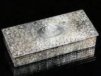 The sterling silver box with hinged lid and all-over engraving is fitted with all of the original contents with matching sterling sliver mounts.