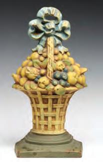 The 16-inch tall cast iron fruit basket doorstop is found in its original paint.