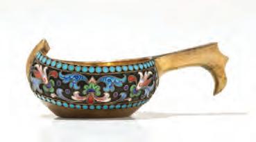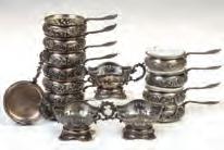 The four Kiddush cups with stamped hallmarks are offered with a Russian 84 standard spoon.