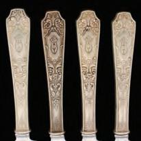 The two sauce boats are lightly stamped. The date mark appears to be 1736 but cannot be confirmed or guaranteed. The ornate ladle appears to be London date mark 1829 but this has not been confirmed.