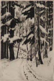 The fine and scarce aquatint etching displays a velvety burr and effectively depicts a complex depiction of blowing snow on a winter day in low light, while a family of mailboxes stands where they always have and a 1930s car moves down the road. The print is signed by the artist in pencil below the image lower right and titled lower left, number 159 in Crump.