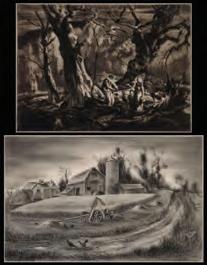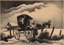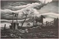 The lithograph from an edition of 250 prints published by Associated American Artists is signed by the artist in pencil below the image lower right, listed as Fath catalog number 64. A nice dark impression.Benton's comments in Fath read: 'This picture was made from a memory of my childhood. My grandfather 'Pappy' Wise had a cotton farm a few miles, 5 or 6, out of Waxahachie, Texas and one night when I was about 7 or 8 years old a great light appeared in the sky. It was so great that speculation about the end of the world was bruited about among the grown folks at the farm. As it turns out a straw stack had caught fire on an adjoining farm and some small tool sheds and part of a fence was burned. We all visited the place next morning and heard tell of how the farmer and his sons had got the scared horses of the the barn. Such things are immensely impressive to young uns.'