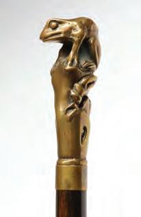 The Malacca wood shaft is tipped in bronze and topped by a cast bronze figure of a tree frog.