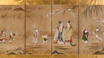 The example with nicely executed florals, inlaid shell and gold leaf has some edge damage.