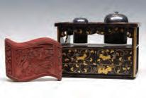 The Japanese tobacco box is in very good condition free from damage, wear or repair. The cinnabar box has scattered chips overall $200 - $300