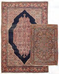 The larger Senneh medallion rug is paired with a small Kashan scatter rug.