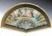 The lithographed fan is displayed in a custom shadowbox case.