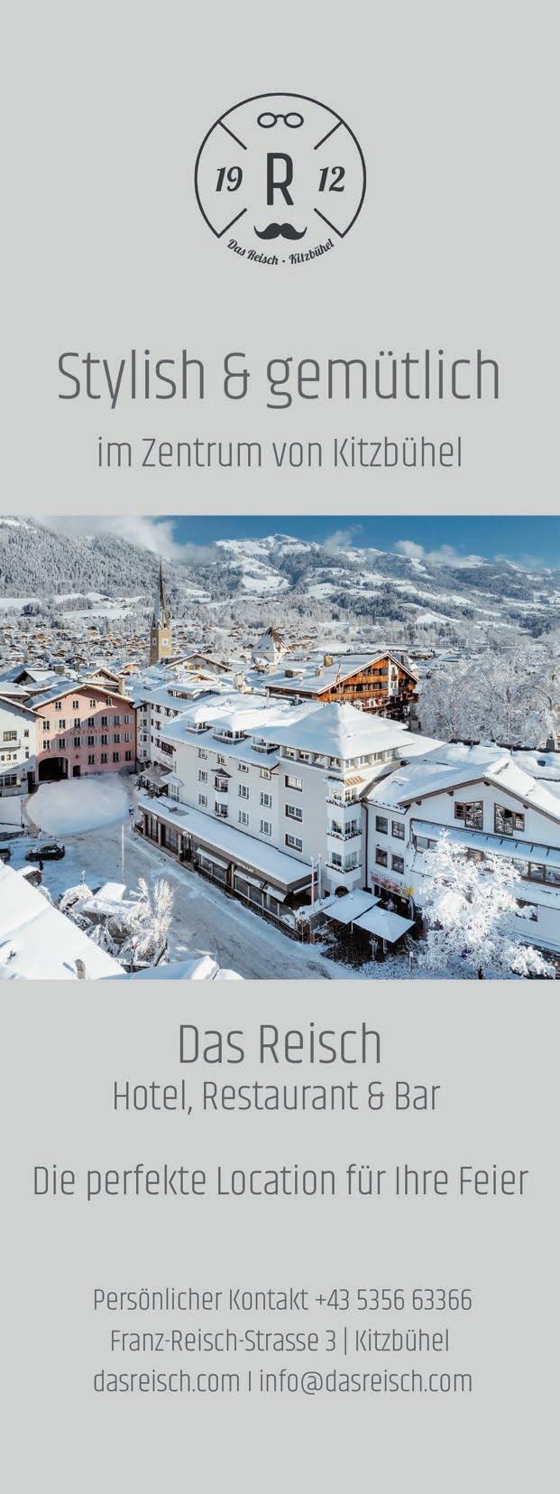 DIE FAMILIE TOMSCHY UND DER HAHNENKAMM SCHREIBEN SEIT 1989 GEMEINSAME GE- SCHICHTE. WAREN ES EINST CHRISTOPHS ELTERN, WOLFGANG UND GABRIELA, DIE DAS SONNBÜHEL 26 JAHRE LANG ZUM PLACE-TO-BE MACHTEN, SO BETREIBT CHRISTOPH TOMSCHY SEIT 2015 HOCHKITZBÜHEL MIT DEMSELBEN FEINSINN FÜR DIE GEHOBENE GASTRONOMIE.