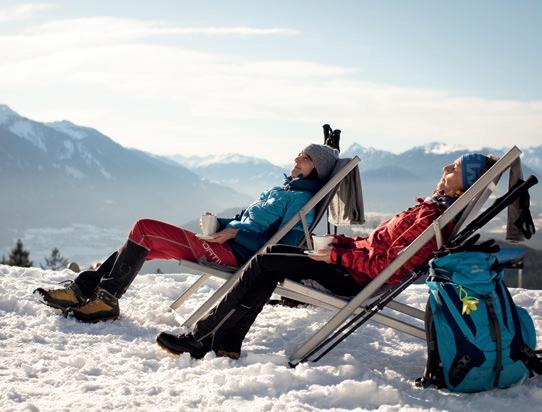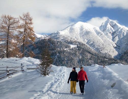 derregion des Landes zu sein. Das größte zusammenhängende Wegenetz hat sie jedenfalls schon. Doch damit nicht genug: Seit sechs Jahren begeistert die Region bereits mit dem ersten Winterweitwanderweg Tirols, eine viertägige Etappenwanderung mit Gepäckservice und spektakulärer Hüttenübernachtung. Mit dem ersten Schnee eröffnet mit der Seefelder Hochplateau Winterweitwanderung dieses Jahr nun sogar der zweite Winterweitwanderweg, der sich in fünf Etappen sternförmig um Seefeld erstreckt.