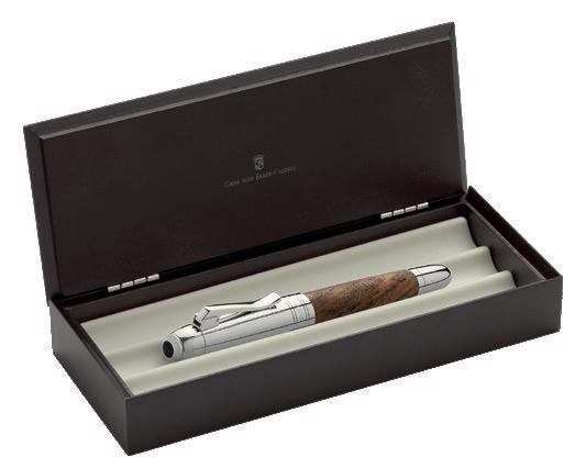 Unverwechselbar wird die Kollektion durch die kontrastierende Kombination von Edelhölzern und -metallen und durch die Kreation einzigartiger Schreibgeräte, die mit der neuen Magnum Edition um eine Serie von höchster Eleganz ergänzt wurde. For ideas that last – die Magnum Edition aus Walnussholz. Mit ihrer dynamischen Silhouette setzt die Magnum Edition optisch ganz neue Akzente. Der Füllfederhalter der Edition ist wie geschaffen für die besonderen Momente, in denen man sich Zeit nimmt, um persönliche Zeilen zu verfassen. Alle Schreibgeräte der Magnum Edition werden in einer eleganten Geschenkverpackung aus Holz überreicht. n