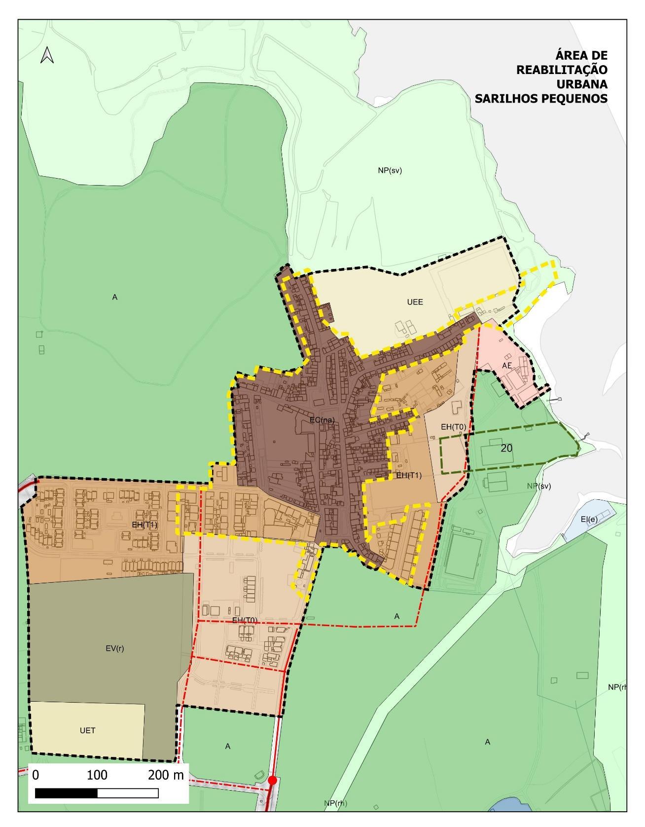Propõe-se, assim, que esta ARU seja constituída pela totalidade da área classificada no Plano Diretor Municipal como Espaços Habitacionais do Tipo 1 (correspondentes às anteriores Zonas Tipo E) e por duas pequenas áreas consideradas franjas classificadas como Espaços Habitacionais do Tipo 1 (correspondentes às anteriores Zonas Tipo B), sendo uma localizada a noroeste da antiga Zona Tipo E e outra a sudoeste da mesma, de modo a travar alguma degradação que se começa a verificar atualmente e, simultaneamente, contribuir para uma verdadeira e efetiva consolidação desta malha urbana.