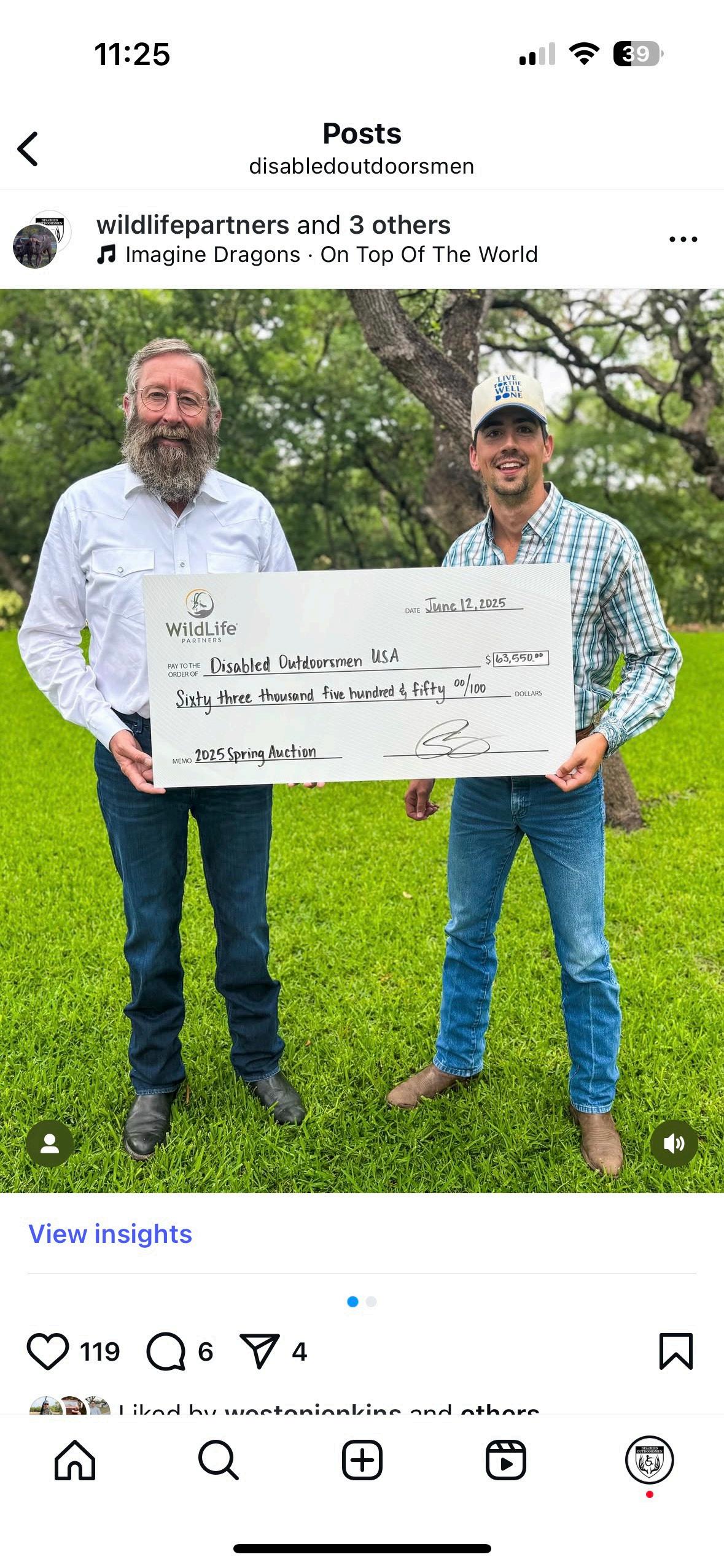 We are incredibly grateful to Wildlife Partners for their extraordinary generosity and support of Disabled Outdoorsmen USA. At this year’s Wildlife Partners Expo in Boerne, Texas, an amazing $63,550 was raised to help us continue our mission of making the outdoors accessible for all.
