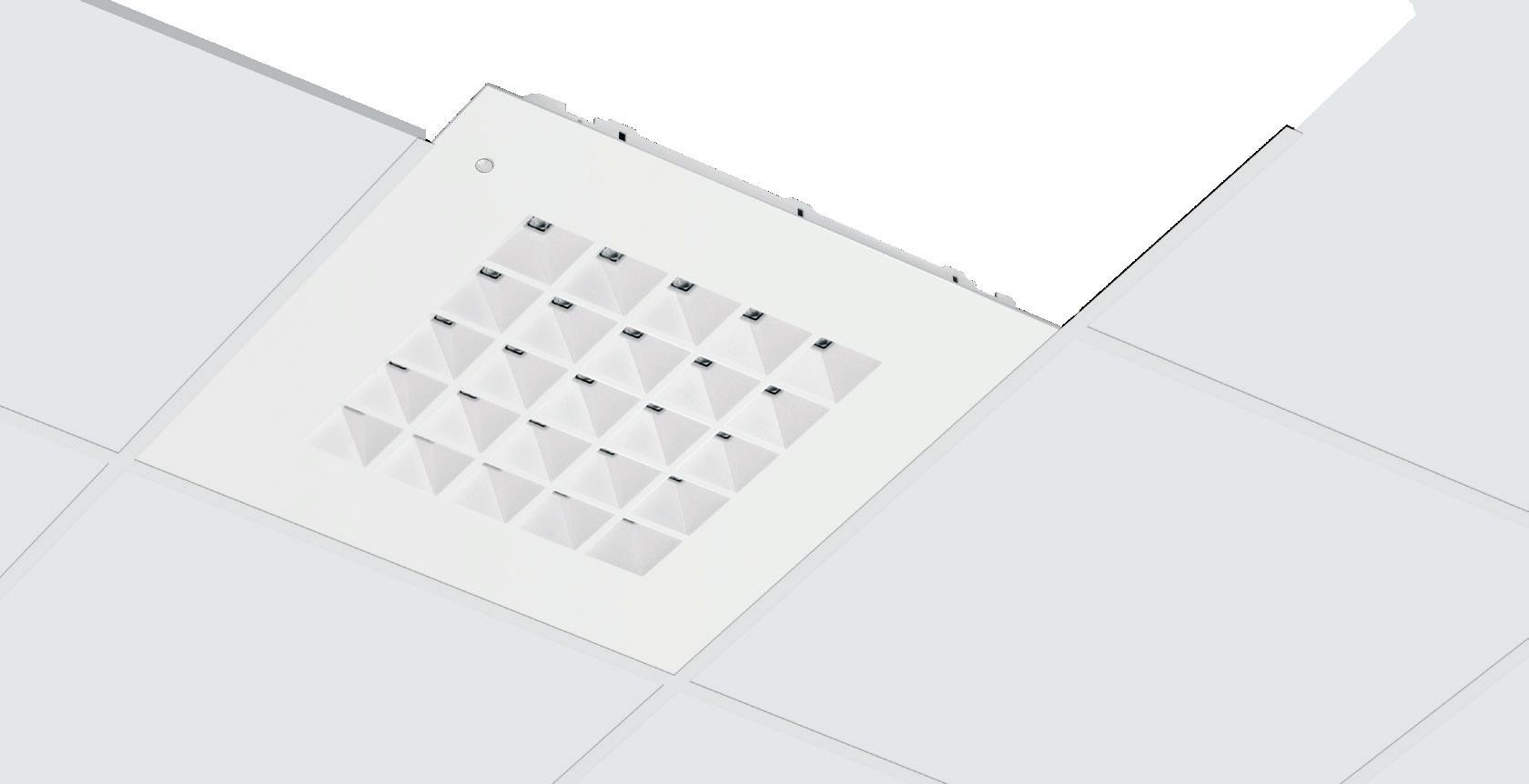 In addition to the Tunable Light technology, the fixtures can be equipped with presence and lighting sensors that allow adjusting artificial lighting, while keeping the lumen value set according to the room’s occupancy and the contribution of natural light. The built-in sensor measures constantly the luminosity value in the environment and compares it with the value set in the presence detector.
