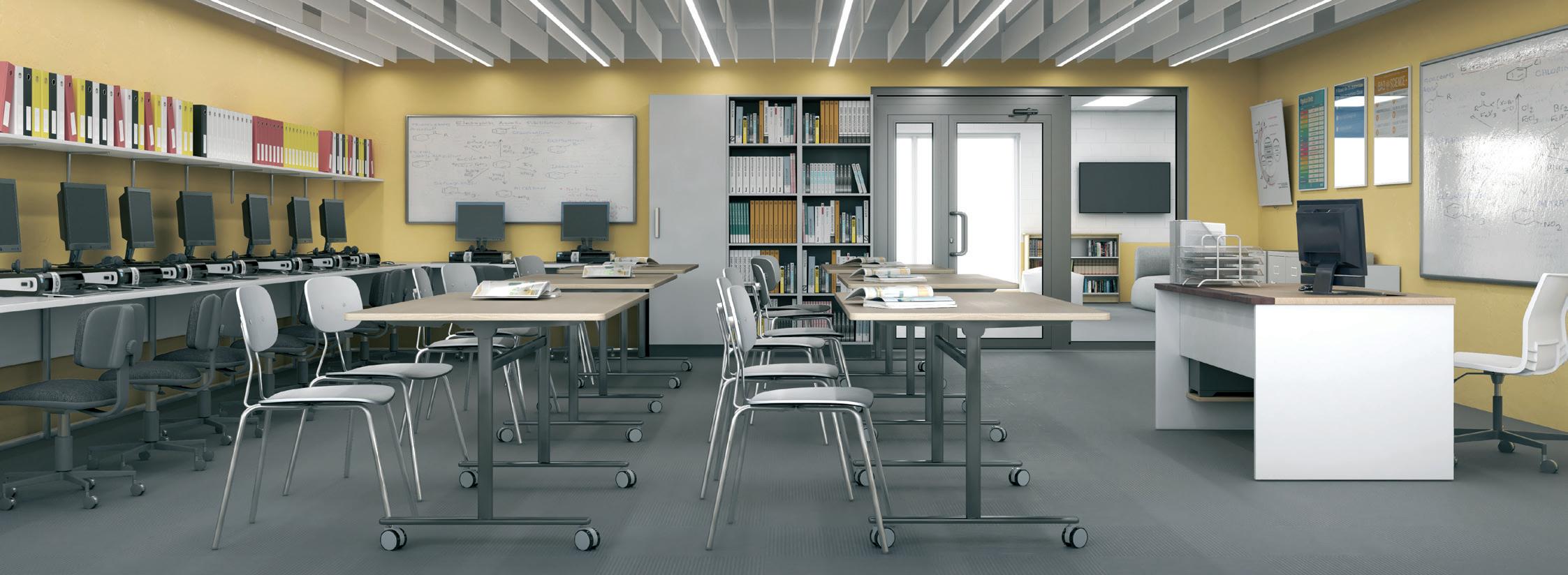 The possibility to study in a comfortable, pleasant and wellilluminated environment increases academic performance. This means that fixtures installed in classrooms, laboratories and corridors should be chosen not only to meet viewing needs, but also to create a study and work environment that is pleasant and functional, while also being energy-efficient and low-cost.