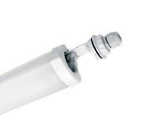 Difusor: de policarbonato trans-parente, antideslumbramiento, irrompible y autoextinguible V2, estabilizado a los rayos UV