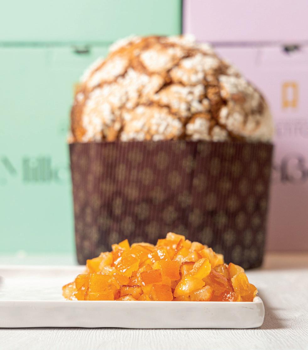 Sicilian citrus peels, cedar cubes, cherries, apricots and tropical fruit are carefully selected and slowly candied using traditional methods in natural sugar syrups.