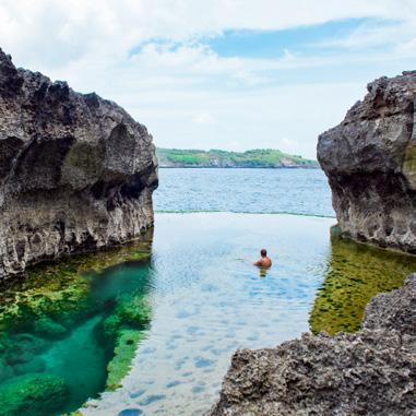 A fun 45-minute speedboat ride away, Nusa Penida is a perfect day trip option if nature and adventure are your two primary requisites as a traveller. Our first stop is Broken Beach, a naturally formed lagoon, a circular hole in a rocky outcrop that appears at first glance to be entirely enclosed by cliffs. Sip on a coconut at a nearby stall and wonder at this natural spectacle, watching clear water drift in from the ocean and back. From the towering heights of Broken Beach, head closer to Angel’s Billabong. This natural “infinity pool” is a lagoon framed by staggered and jagged volcanic rocks. The water is clear enough to see the strange patterns of rock formations on the pool floor.