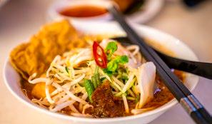 Travel to Sri Maha Temple via MRT, where you will learn about the temple’s significance within the city’s Indian community. At a local restaurant, try roti canai—a flavourful Indian-influenced flatbread served with curry and soup. Further along, sample succulent beef meatballs in hot soup from a 70-yearold establishment.