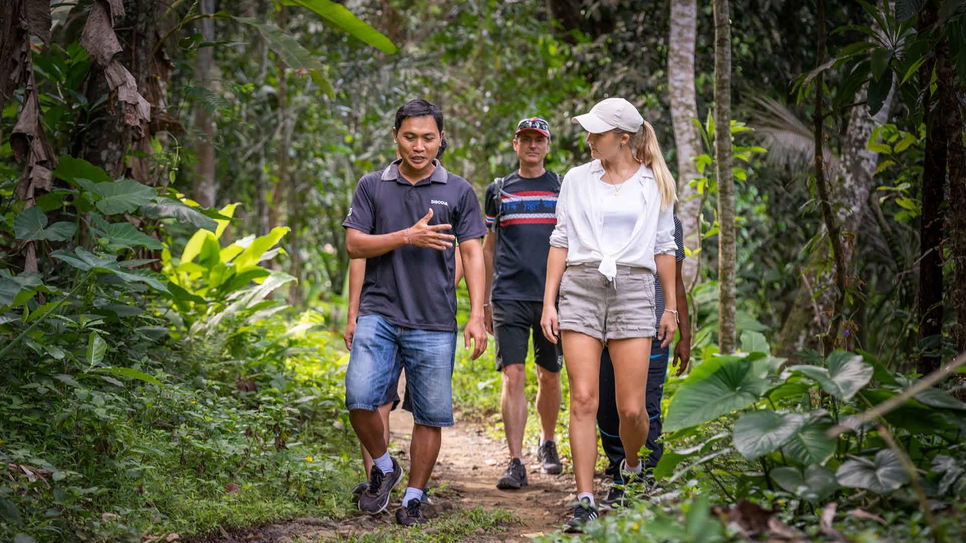 A slow two to three-hour orientation walk of the village, its various farming initiatives, and its stunning immediate surroundings. Guests are accompanied by a local community member who has been directly involved in the development projects that formed the original, foundational relationship with the greater Manggis community.