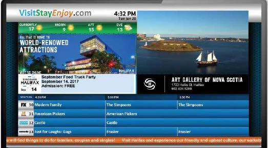 VisitStayEnjoy! is an in-room channel guide appearing in over 3,750 hotel rooms in the Halifax region, 70% of which are in the downtown core.