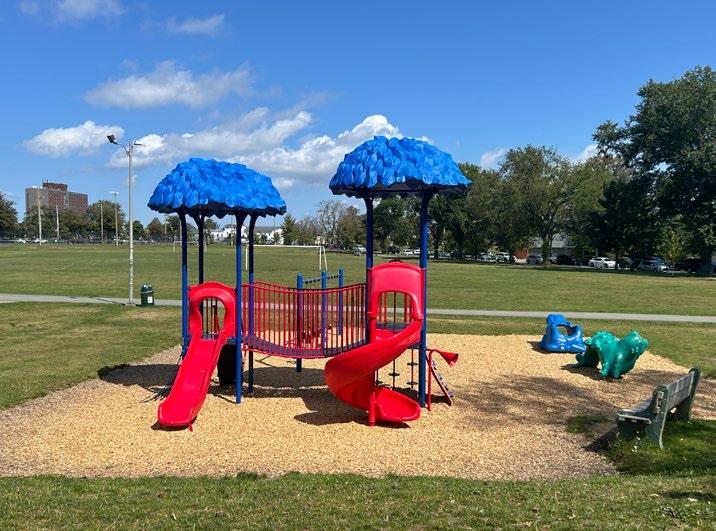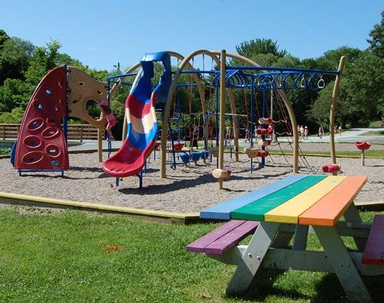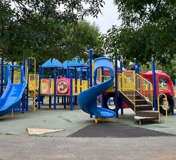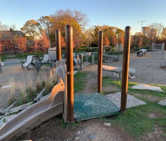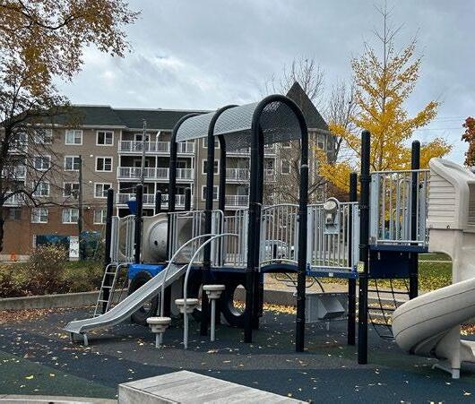 This playground is a great spot for wheelchair users, with inclusive features like a roll-on merrygo-round and ramps for easy access. The turf surface lets kids using walkers or wheelchairs join in the fun. Parking is available on Brunswick Street, though there is a slight incline.